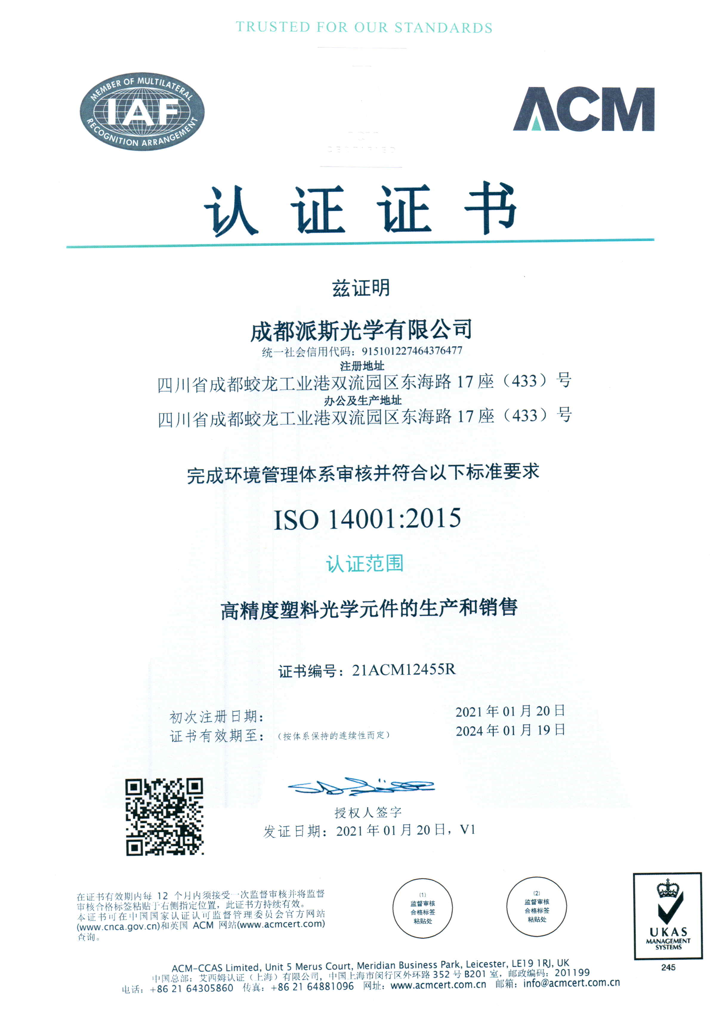 成都派斯光学有限公司成立于2003年,是一家专业从事高精密塑料光学元件、光学镜头、TV背光透镜、手机闪光灯透镜、LED照明光学透镜以及汽车照明光学元件的研发及生产的高新技术企业。